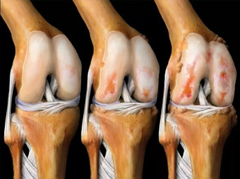 Efectele artrozei asupra cartilajului articulației genunchiului.